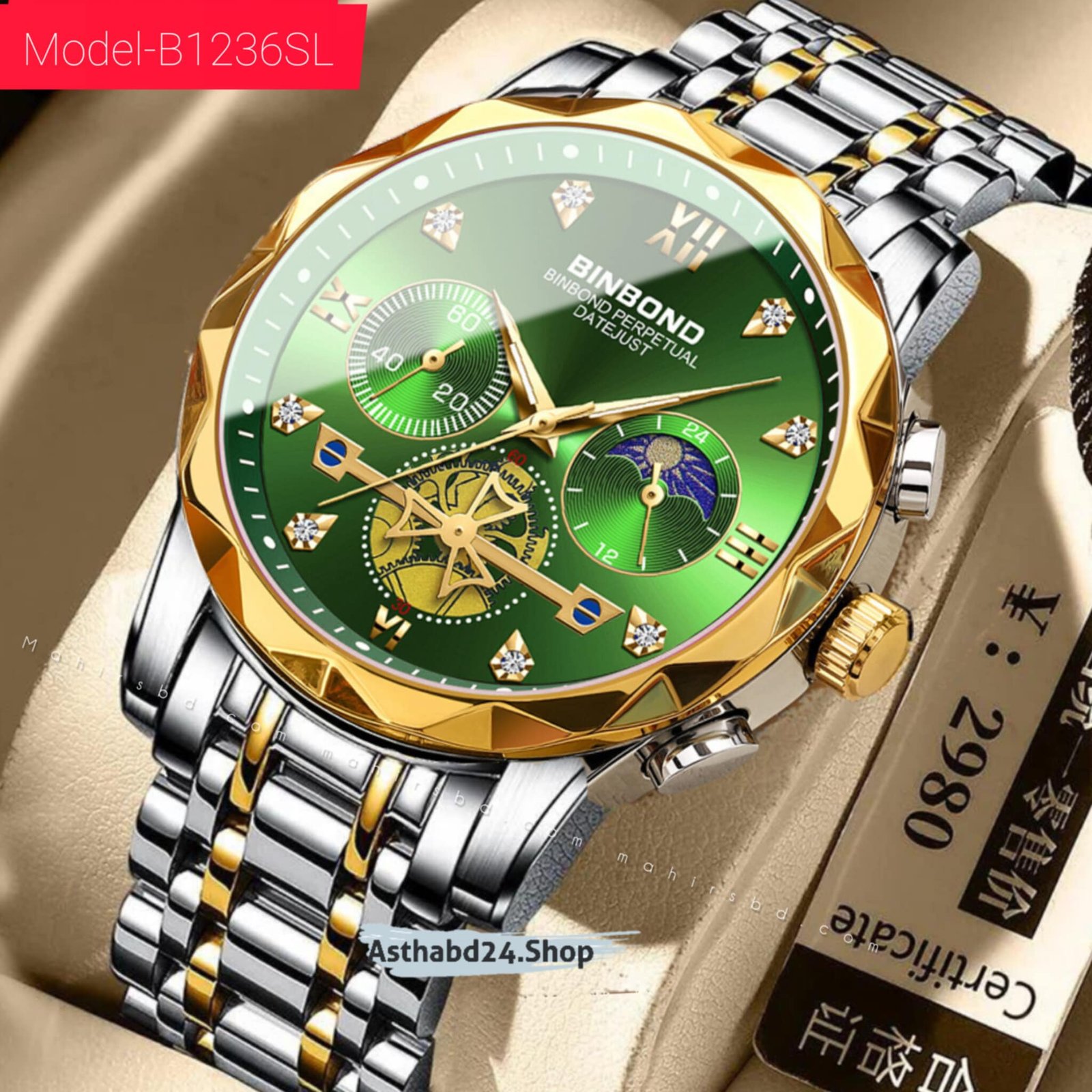 BINBOND 1236SL Luxury (Single Lock) Men’s Watch-Golden Green