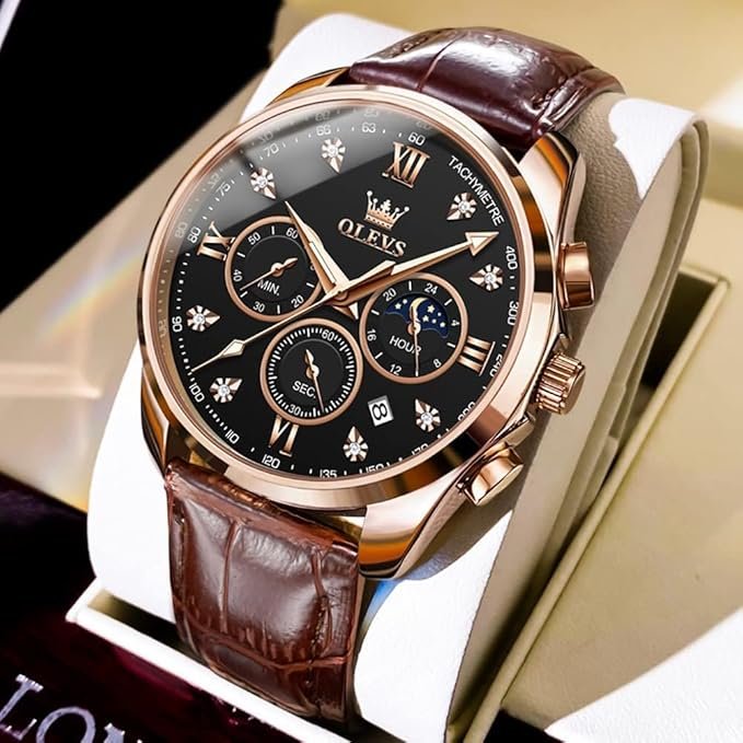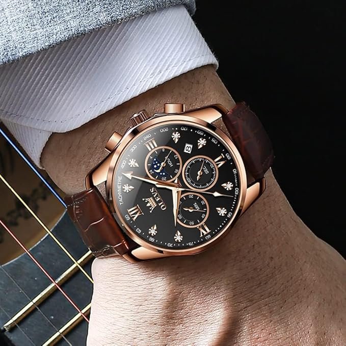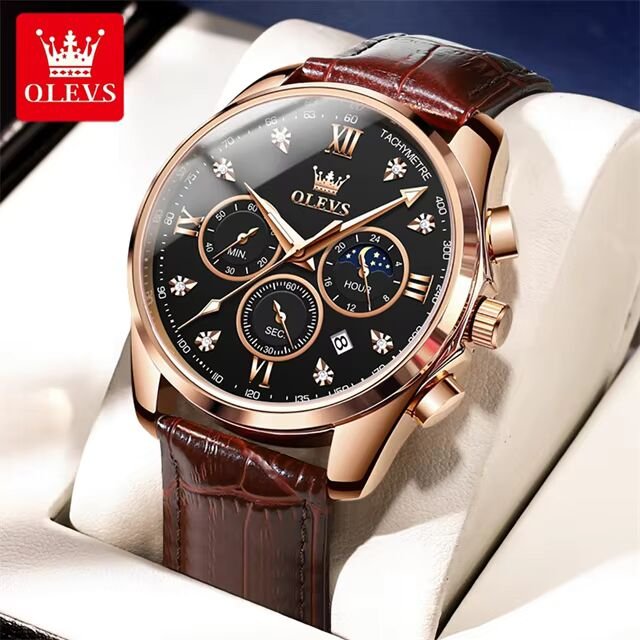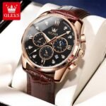 OLEVS 2872 Classic Leather Quartz Men’s Watch-Rose Black